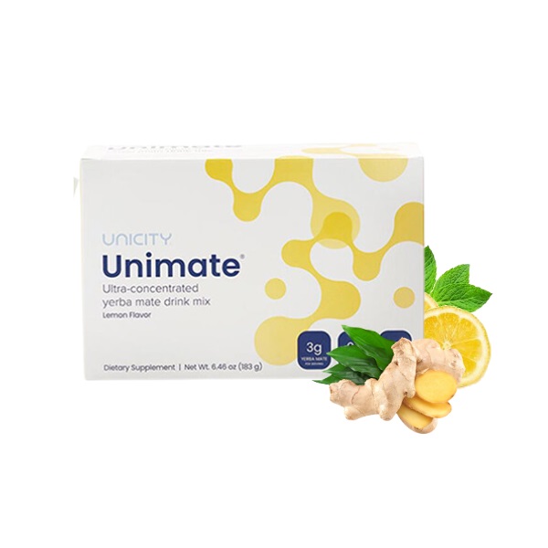Unimate Chanh Gừng (Hay còn có tên đầy đủ là Unimate Lemon Ginger Flavored Mate) được nghiên cứu sản xuất bởi tập đoàn nổi tiếng từ Mỹ – Unicity. Sản phẩm có tác dụng hỗ trợ nâng cao năng lượng tích cực và tối ưu hóa chức năng não bộ. Không chỉ giúp cải thiện tâm trạng và giảm bớt căng thẳng, mệt mỏi, và áp lực mà sản phẩm còn hỗ trợ việc tăng cường trí nhớ, sự tập trung và khả năng suy luận, đồng thời cải thiện hiệu quả học tập và làm việc.